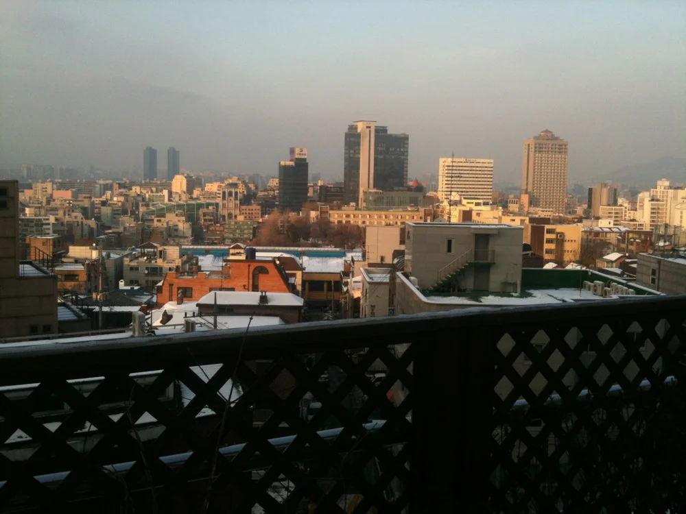 View from today's 'balcony' 4 Jan Written By Carl Pullein Taking a break in the 7 hour writing class, the view across downtown Seoul is quite bueariful Carl Pullein